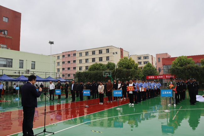 本次技能競賽科目分別是隊列展演、消防兩盤水帶連接、消防快速滅火操。隨著比賽“開始”口令的下達,四支隊伍共70名參賽隊員身著保安制服,以飽滿的精神、高昂的氣勢、整齊的步伐以及響亮的口號震撼亮相。稍息、立正、敬禮與禮畢、正步走、齊步走……他們用整齊劃一的動作、干凈利落的操作表演、扎實的軍事素養(yǎng),贏得了現(xiàn)場觀眾和評委的高度贊揚和肯定!最終江蘇萬楊保安服務有限公司和江蘇天時物業(yè)管理有限公司獲評團體第一名和第二名。